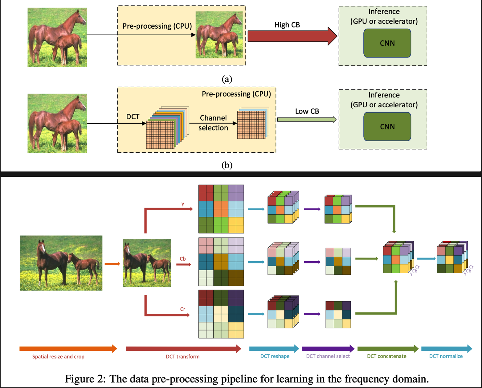 做输入数据维度压缩。先有方法一般是先下采样图片,会导致信息丢失。所以 follow JPEG 编码格式,先把图转到频域,然后挑选重要的通道(类似 SENet)。