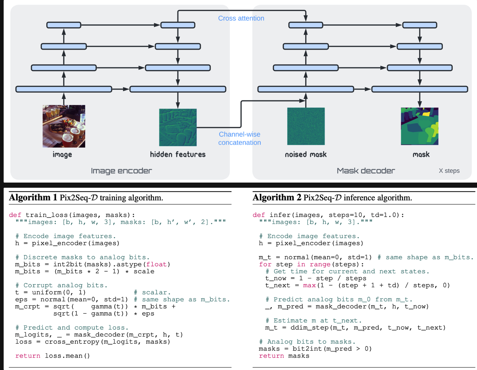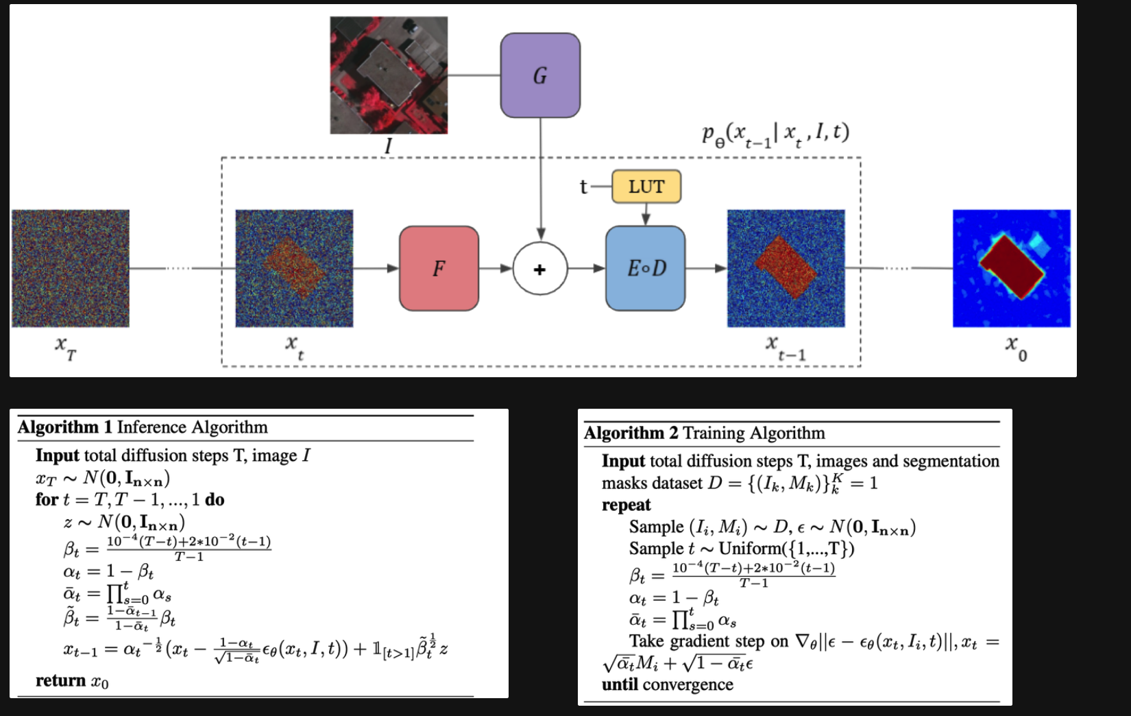 以Ground Truth的mask作为生成基础,开始加噪声扩散;逆向的时候修改了噪声预测模型,为图中的G F D E;其他保持不变