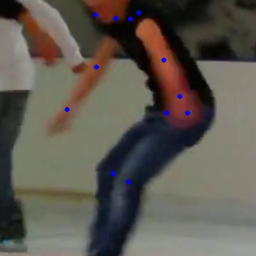 这是我1280*720图像直接resize到 368*368的结果,红点是在原始图像画上去的,resize后到了上图中,上图中绿色的圈圈(下面的)则是经过简单的坐标计算: