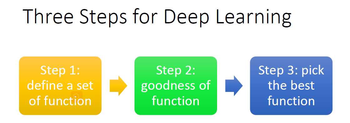 深度学习过程于机器学习类似,这里就先讲一下机器学习的,深度学习后面会讲到。对于一个特定的机器学习 Machine Learning任务,简单来说有以下固定的三个步骤: