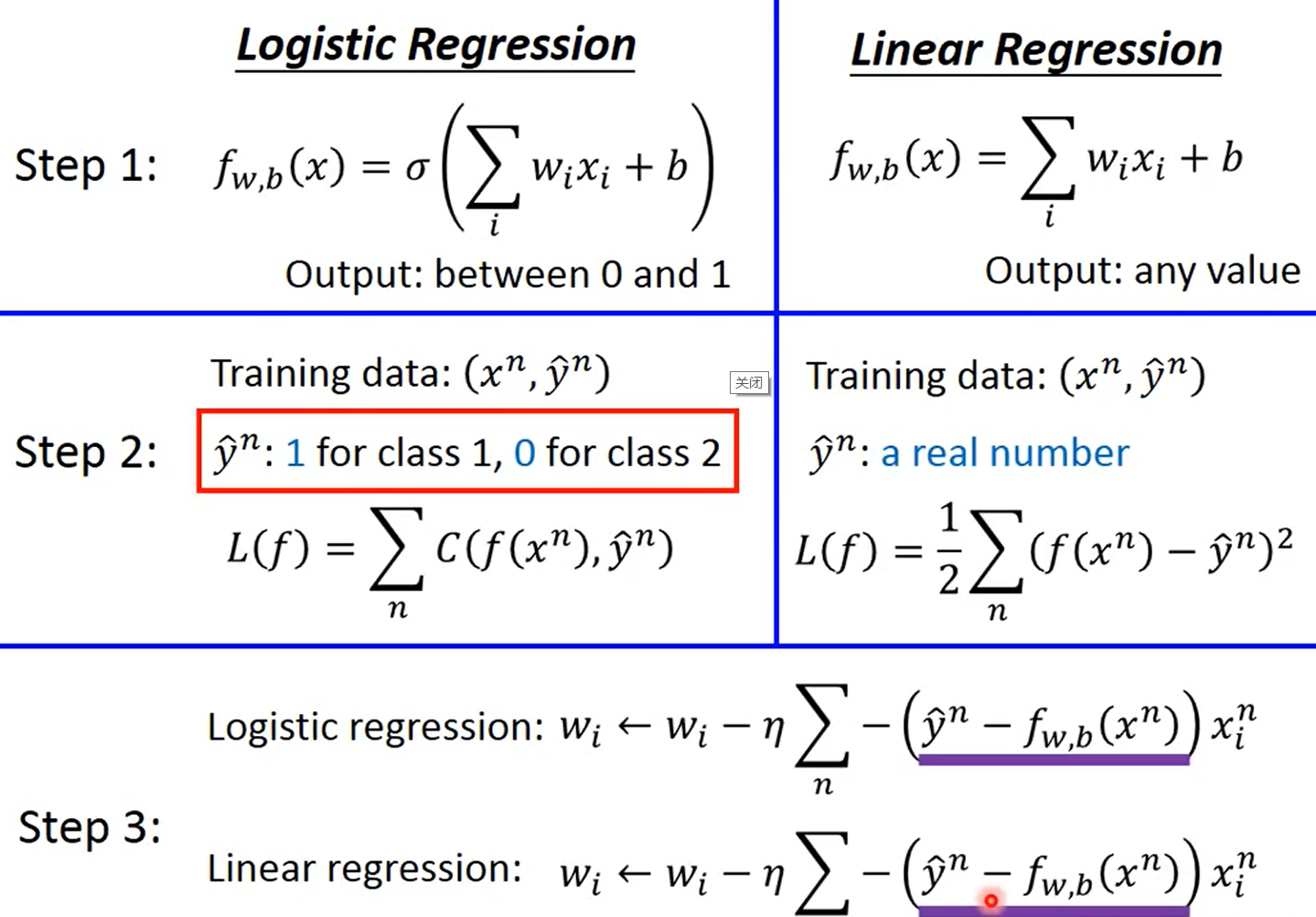 • step3比较神奇,两个损失函数长得差别很大,但是算到最后更新参数公式竟然是一样的!(后面有推导)