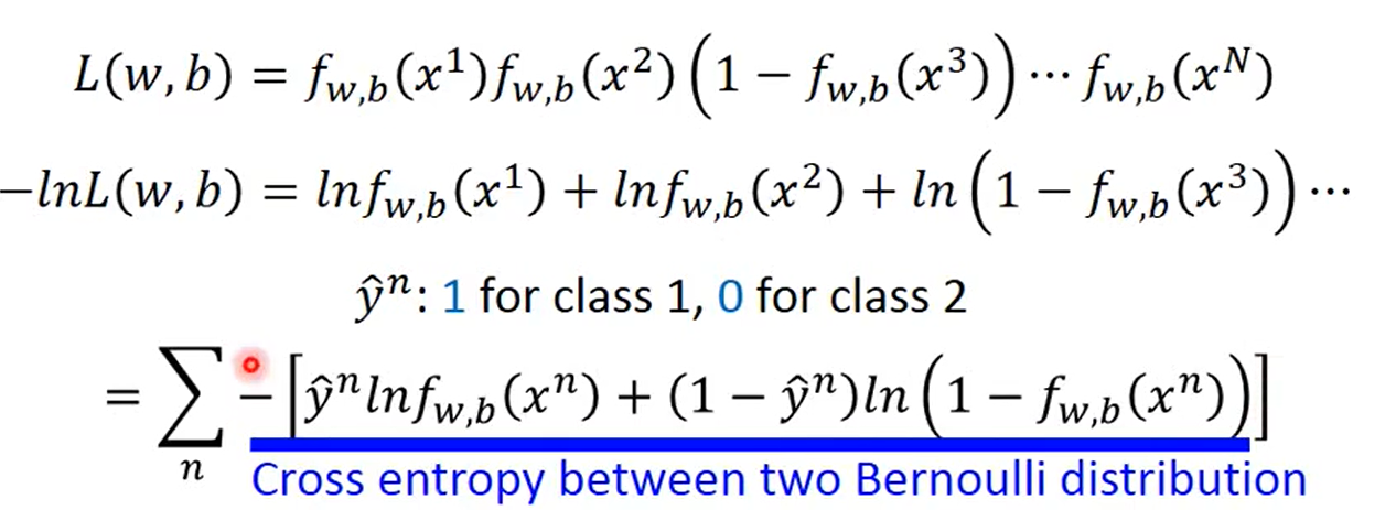 **这里的之所以要取对数,是因为拆开之后求微分比较容易。**蓝色线画的,即是交叉熵,也就是表格中step2的C函数。