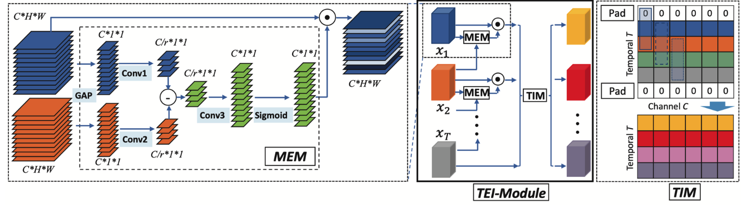 The TEI module presents a different paradigm to learn temporal features by decoupling the modeling of channel correlation and temporal interaction. 差分建模