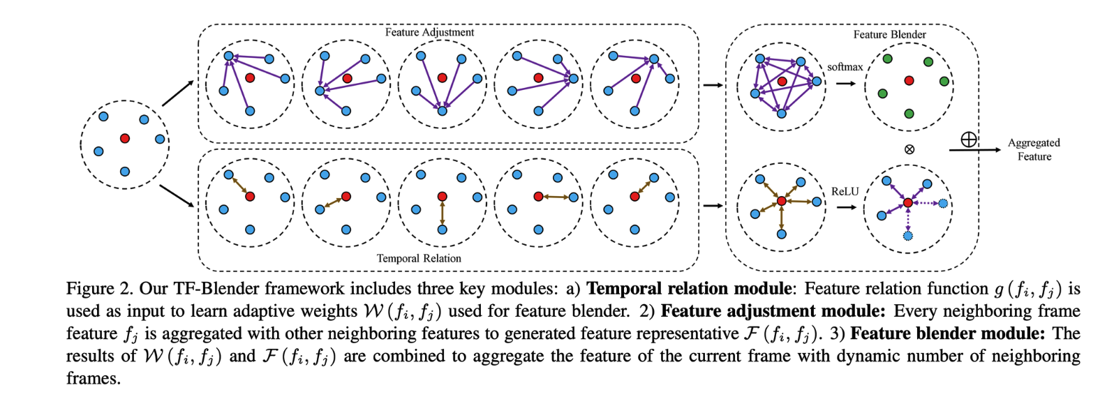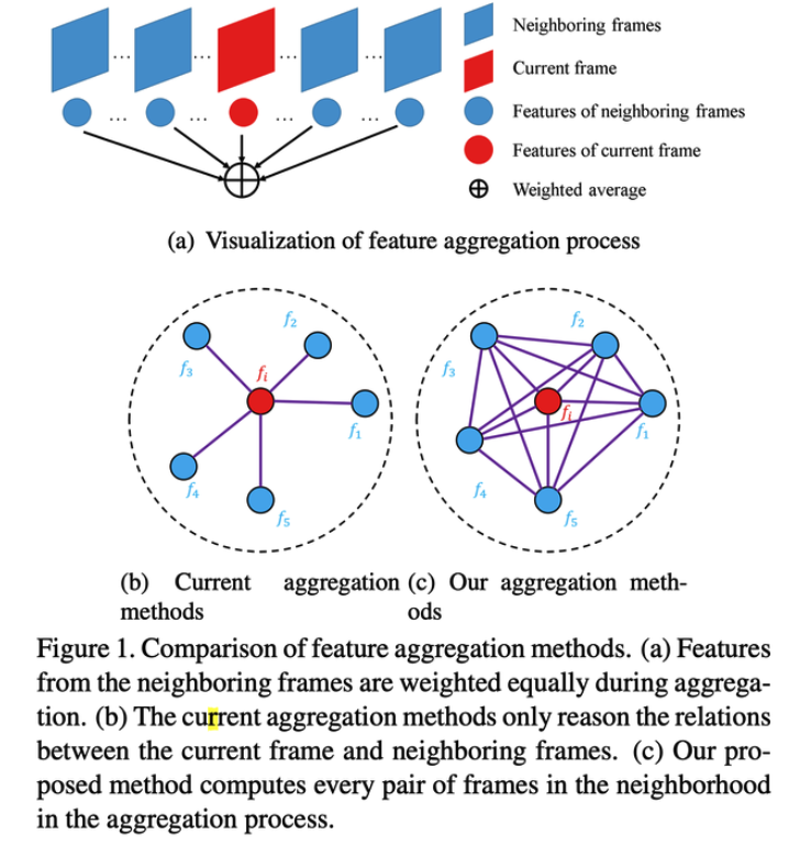 一种新的多帧特征聚合方式,更充分的对每帧进行增强;建模当前帧与其他帧的关系权重